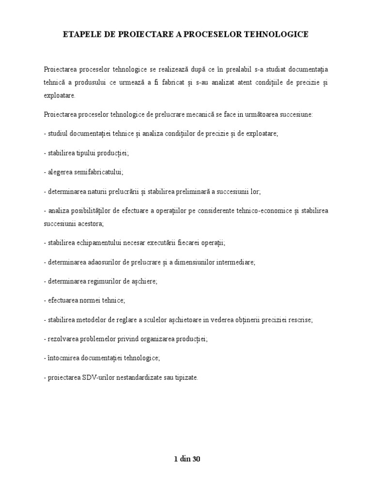 operaț[Link] obținerea piesei finite există mai multe variante de proces tehnologic, din punct