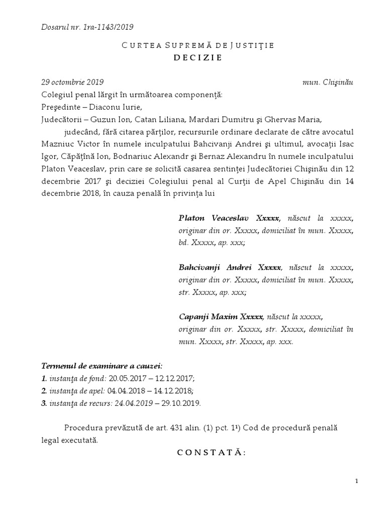 Platon Veaceslav a fost recunoscut vinovat de comiterea infracţiunii prevăzute de art.