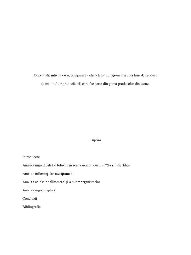 Dezvoltaţi, într-un eseu, compararea etichetelor nutriţionale a unei linii de produse