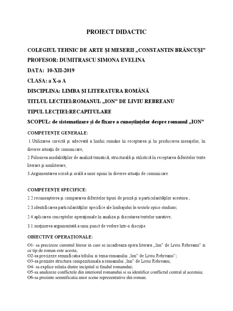 TITLUL LECTIEI:ROMANUL „ION” DE LIVIU REBREANU
