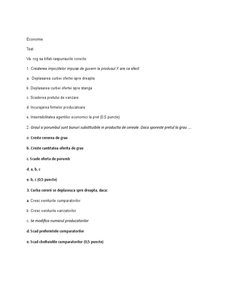 1. Cresterea impozitelor impuse de guvern la produsul X are ca efect: