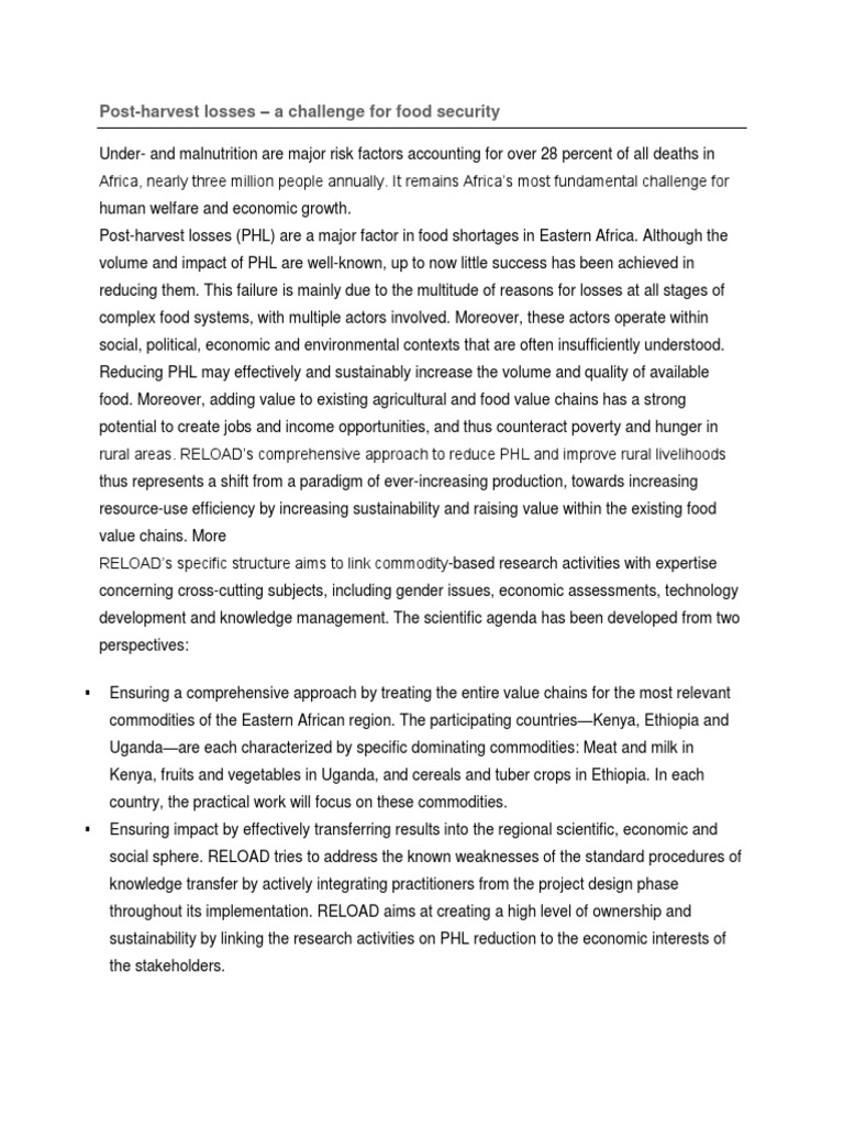 rural areas. RELOAD’s comprehensive approach to reduce PHL and improve rural livelihoods