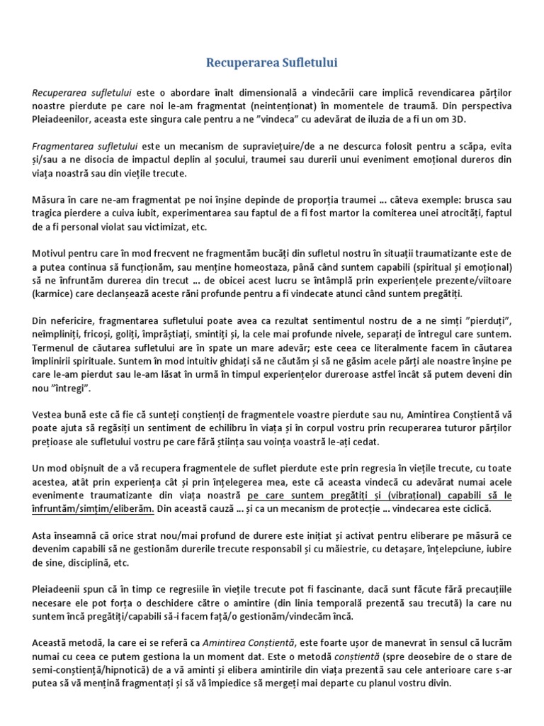 să descoperiți că după o serie de sesiuni de recuperare a fragmentelor de suflet, începeți să vă simțiți mai