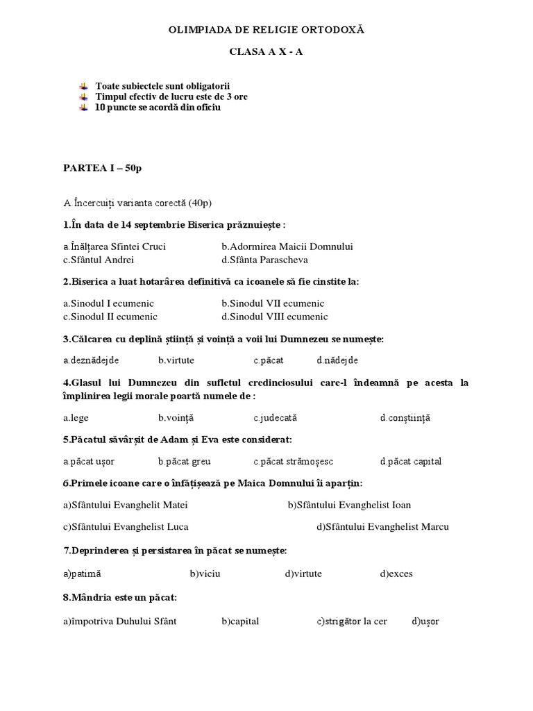 OLIMPIADA DE RELIGIE ORTODOXĂ