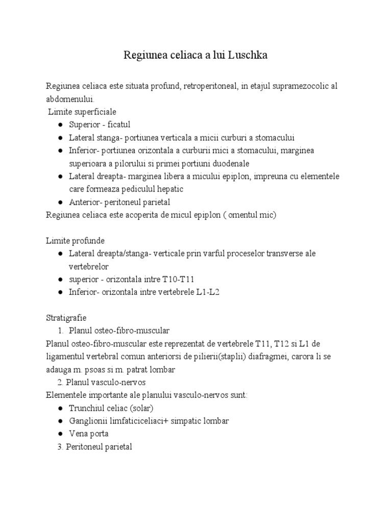 Regiunea celiaca este situata profund, retroperitoneal, in etajul supramezocolic al