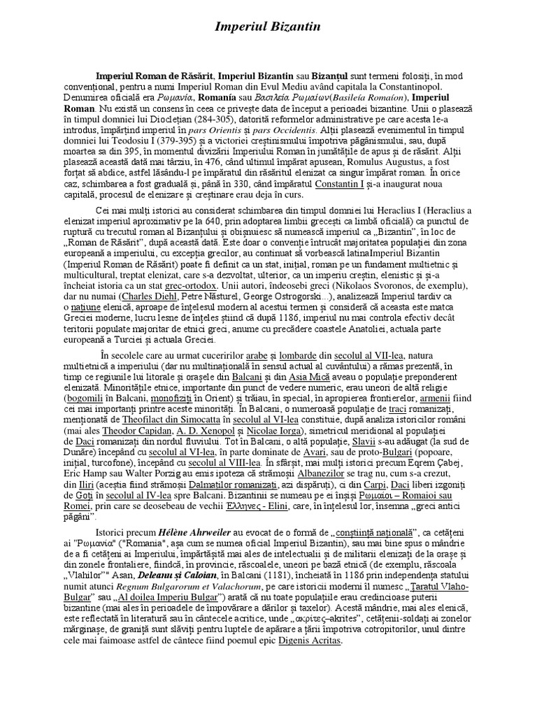 (Imperiul Roman de Răsărit) poate fi definit ca un stat, inițial, roman pe un fundament multietnic și