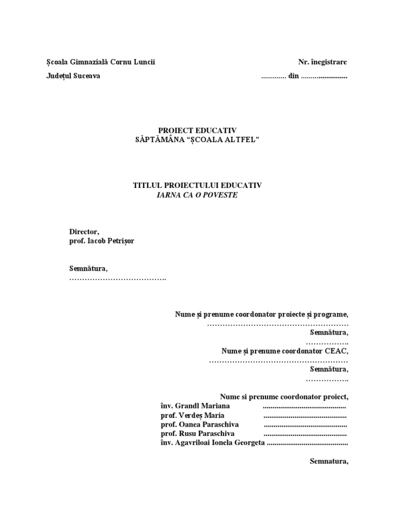 PROPUS PENTRU SĂPTĂMÂNA ŞCOALA ALTFEL