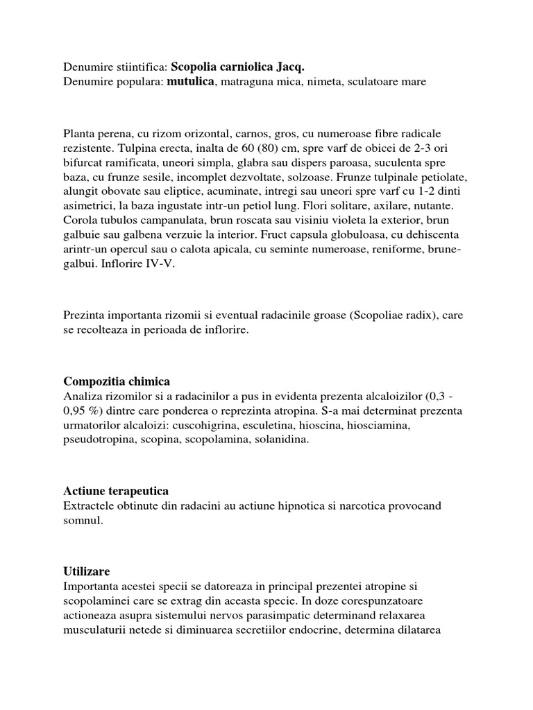 Denumire stiintifica: Scopolia carniolica Jacq.