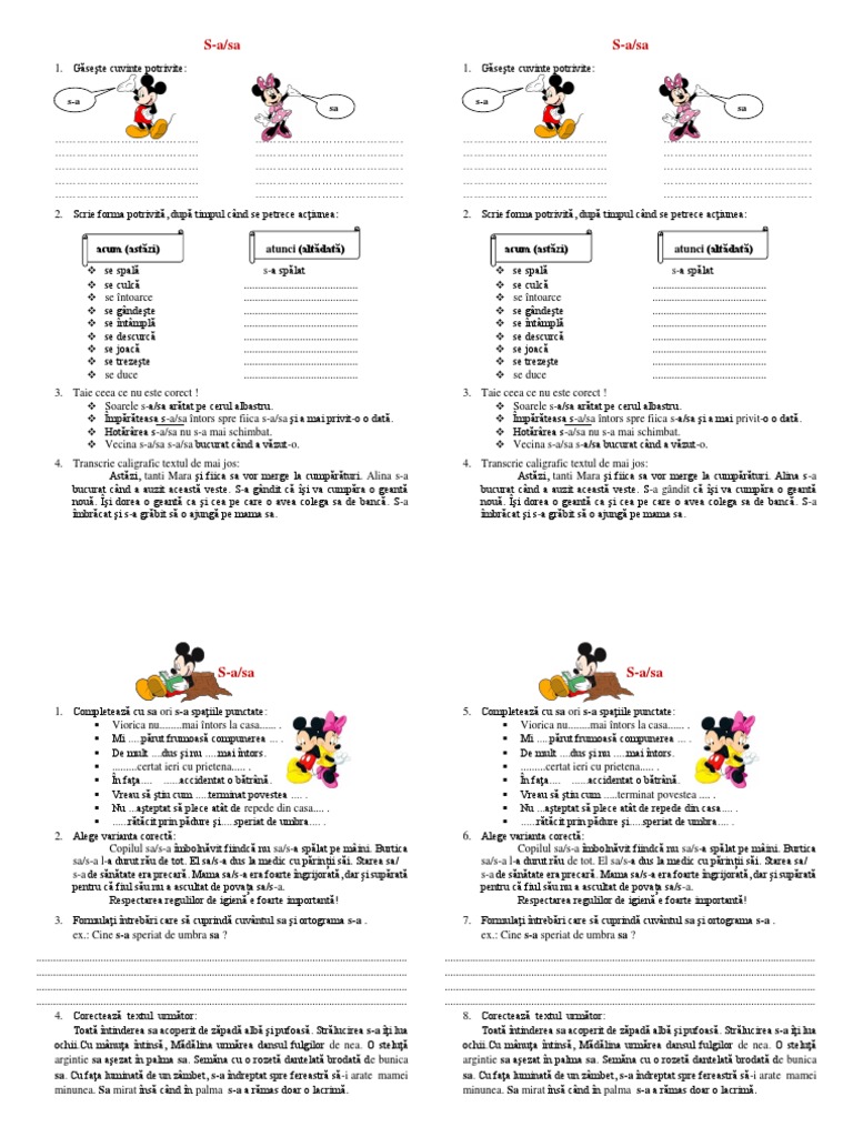 1. Completează cu sa ori s-a spaţiile punctate: 5. Completează cu sa ori s-a spaţiile punctate: