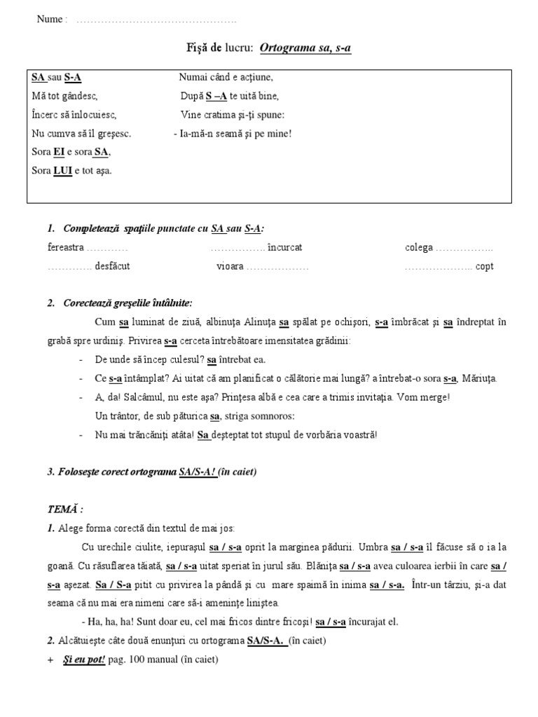 3. Foloseşte corect ortograma SA/S-A! (în caiet)
