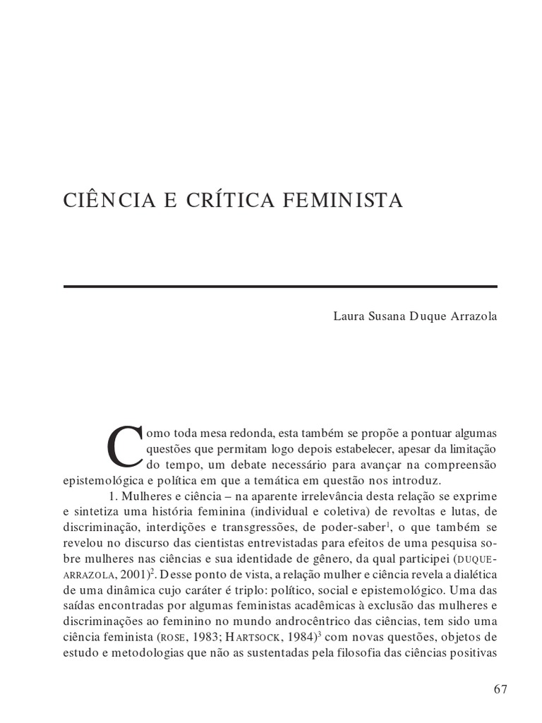A crítica feminista às ciências naturais e sociais identificou nelas “uma