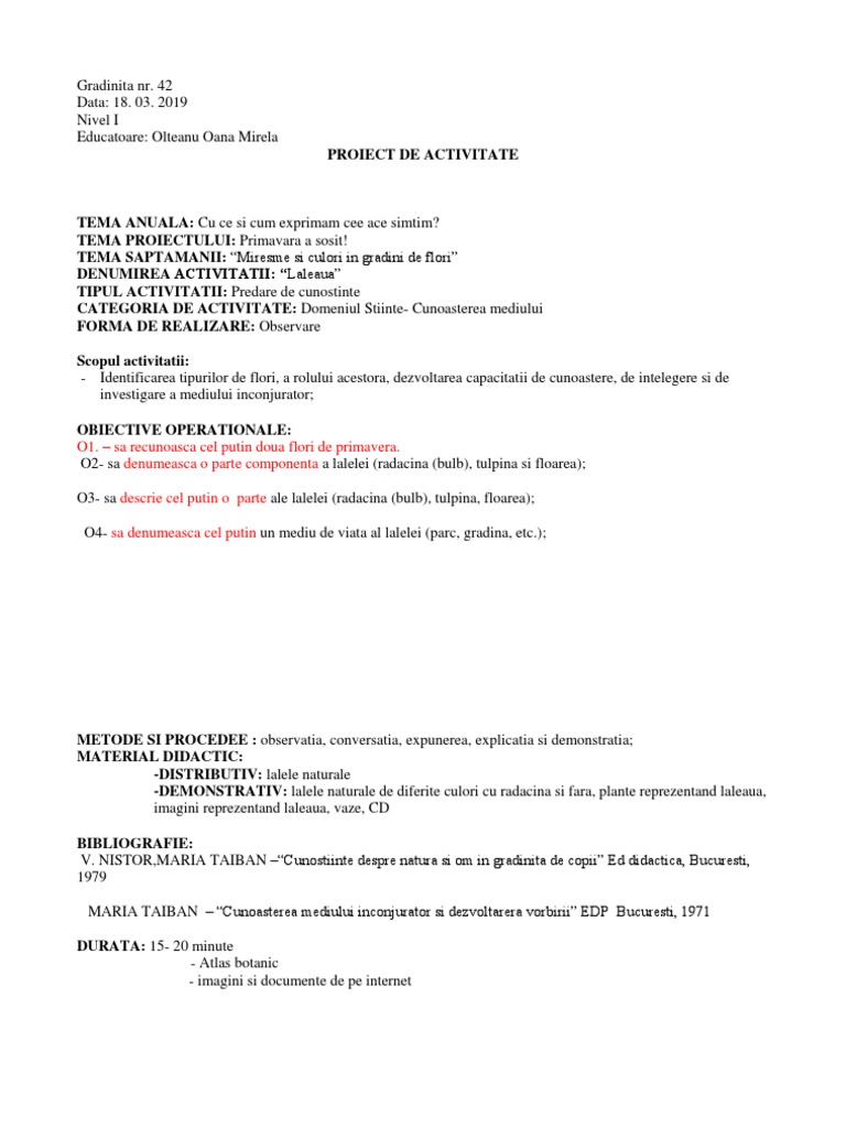 DENUMIREA ACTIVITATII: “Laleaua”