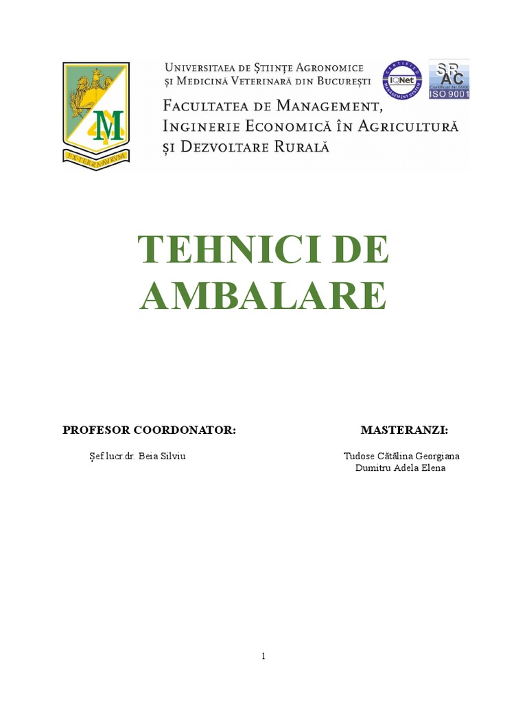 (1989), ambalajul este un “invelis din materiale si forme diferite in care se ambaleaza un