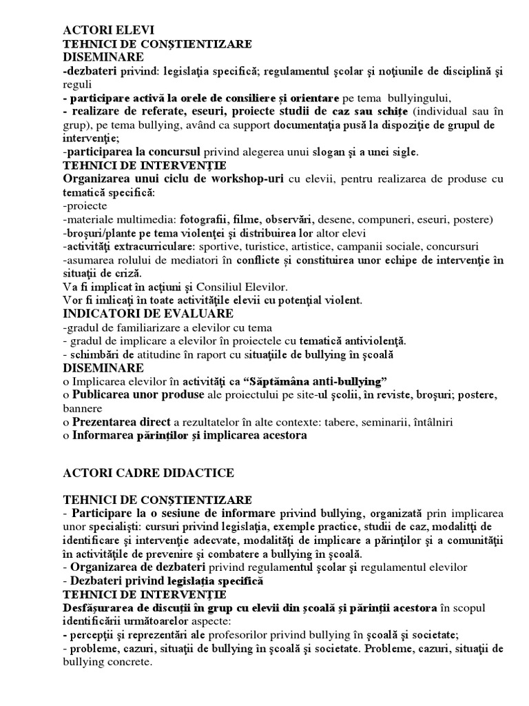 o Implicarea elevilor în activităţi ca “Săptămâna anti-bullying”