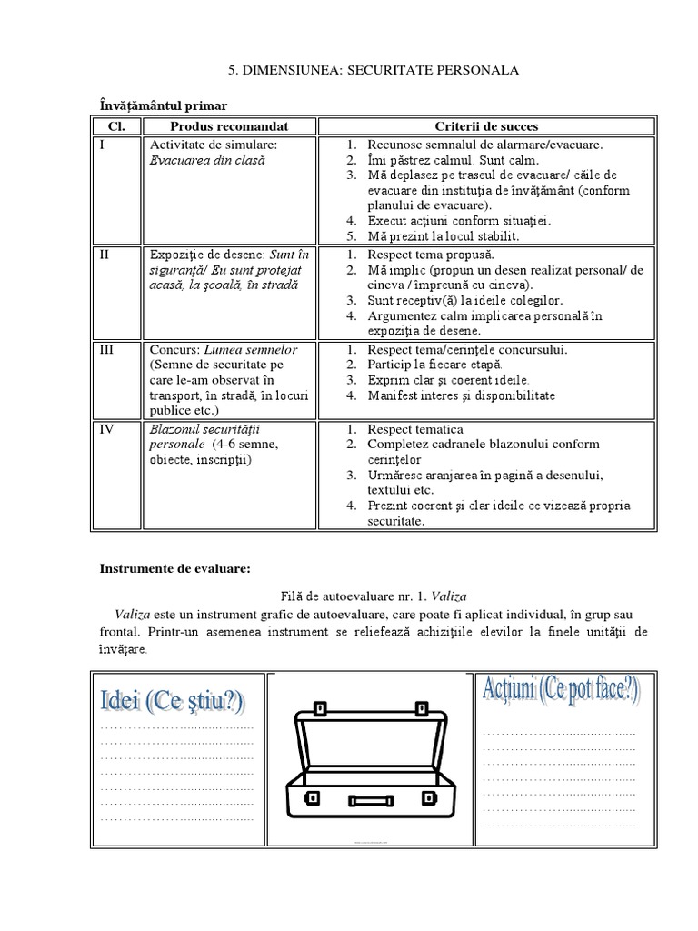 Valiza este un instrument grafic de autoevaluare, care poate fi aplicat individual, în grup sau