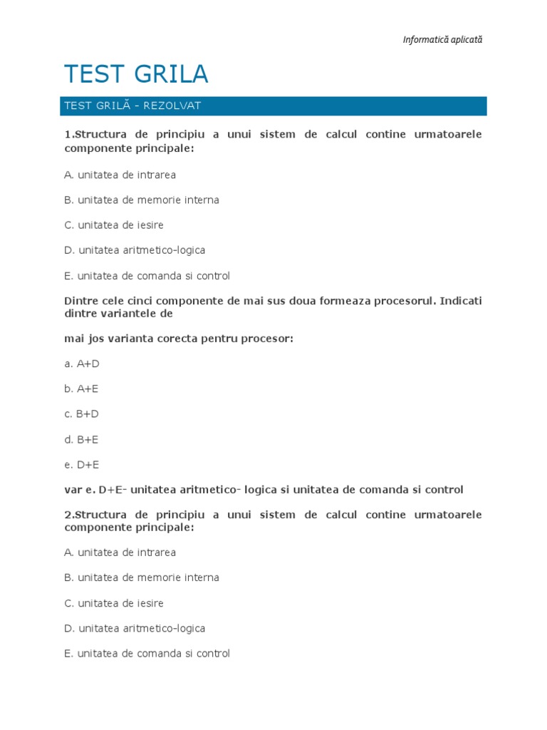 TEST GRILĂ - REZOLVAT