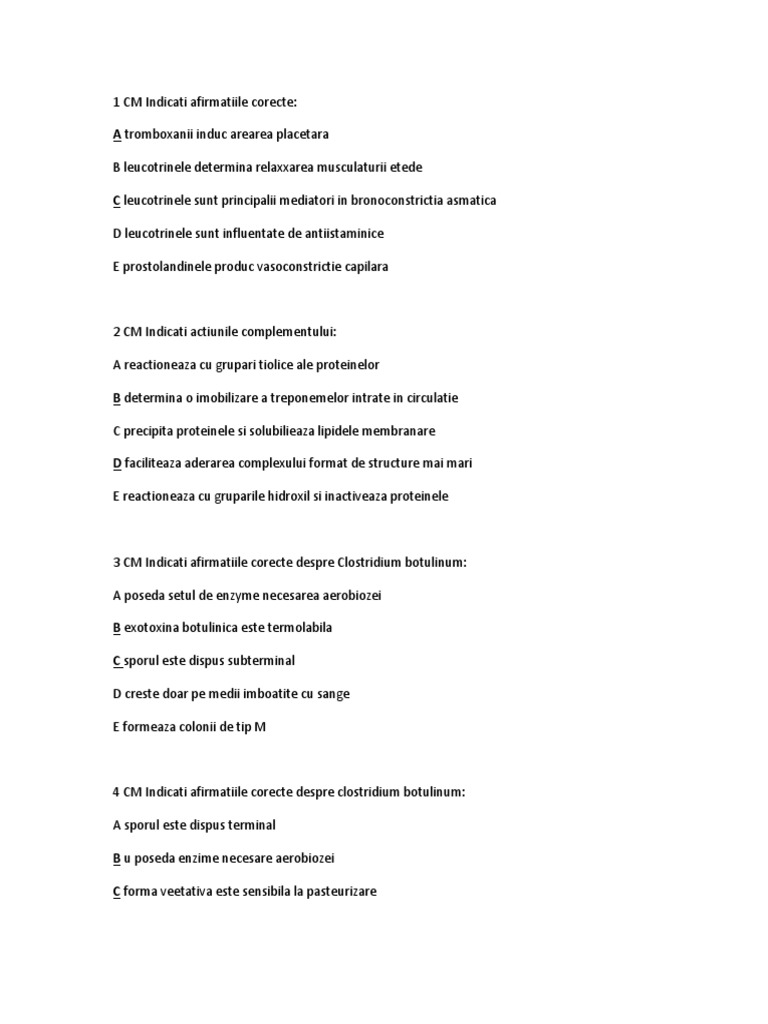 4 CM Indicati afirmatiile corecte despre clostridium botulinum: