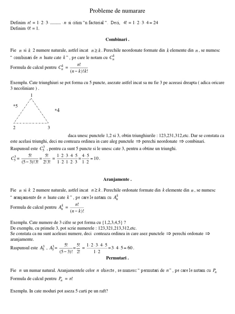 Exemplu. Cate triunghiuri se pot forma cu 5 puncte, asezate astfel incat sa nu fie 3 pe aceeasi dreapta ( adica oricare