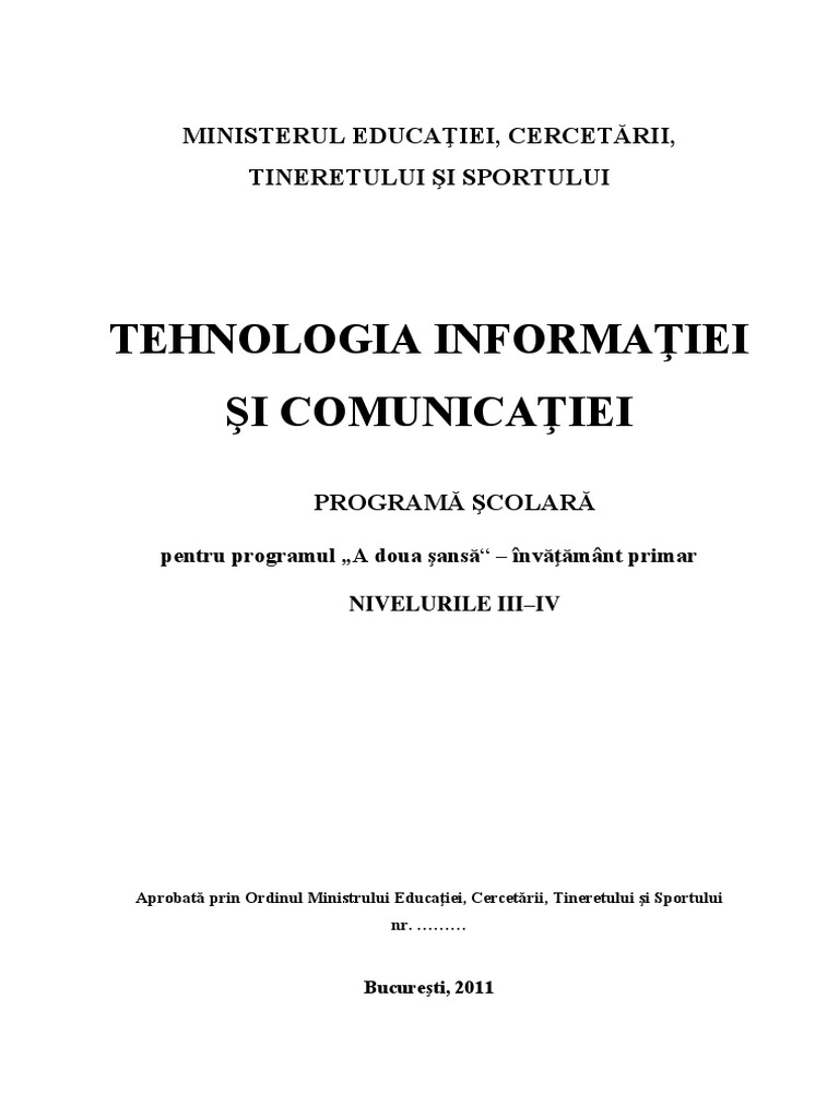 Programa şcolară Tehnologia informaţiei şi comunicaţiei – nivelurile III-IV