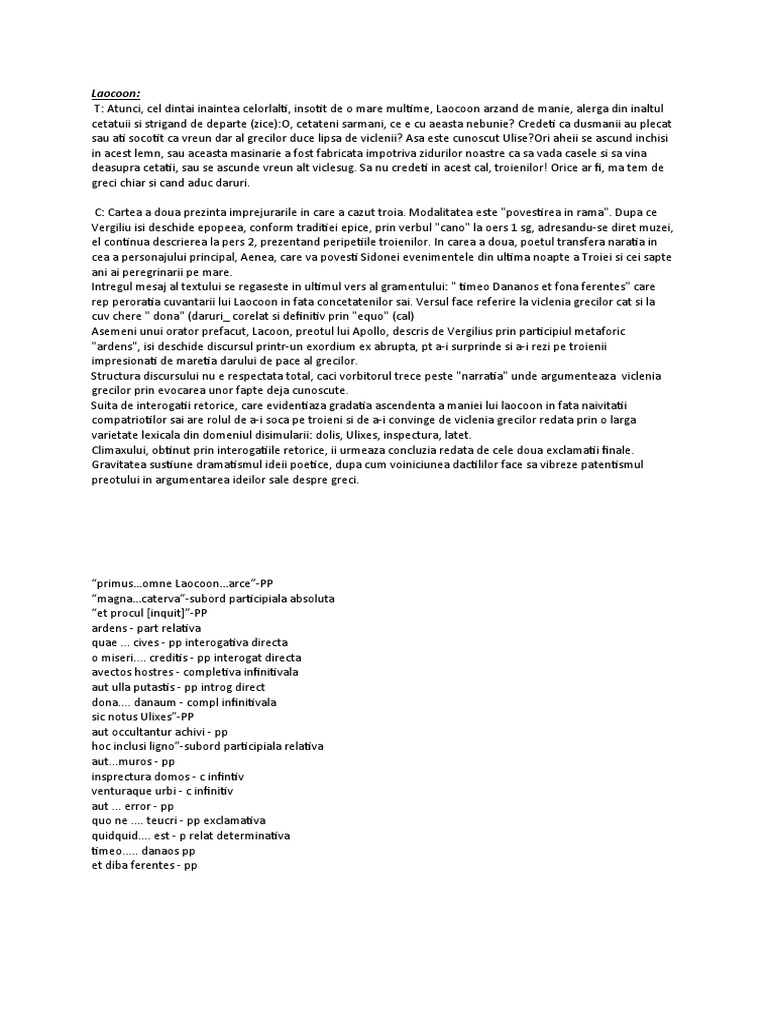 T: Atunci, cel dintai inaintea celorlalti, insotit de o mare multime, Laocoon arzand de manie, alerga din inaltul