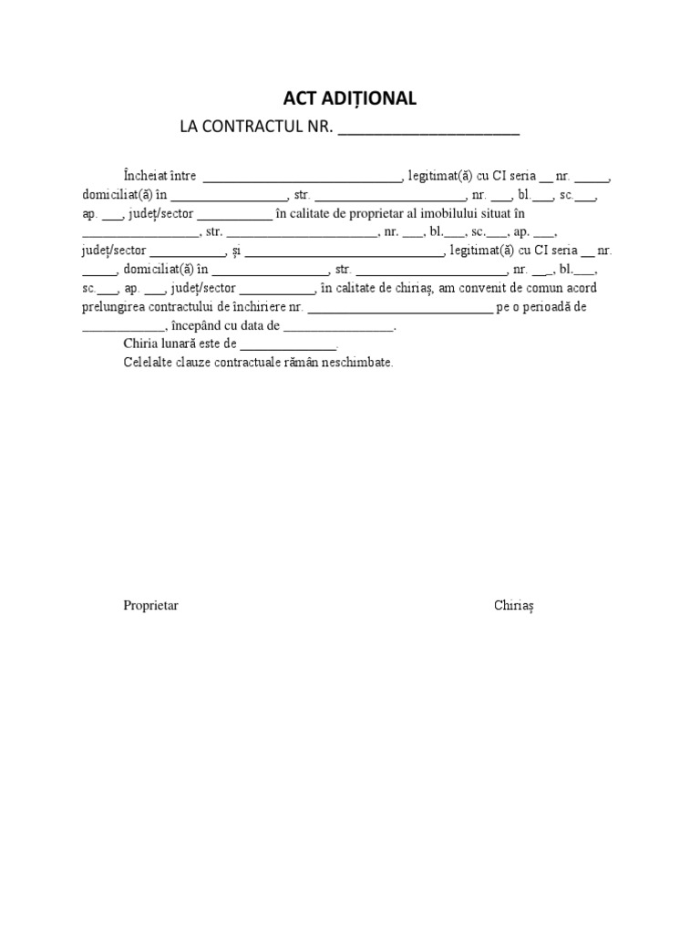 prelungirea contractului de închiriere nr. ___________________________ pe o perioadă de