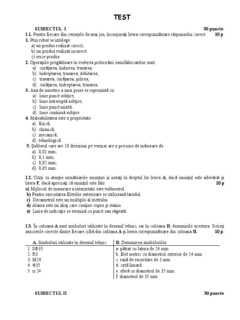 SUBIECTUL I 30 puncte