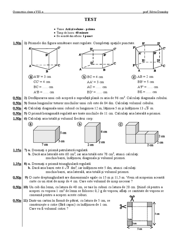 1,50p 1) Prismele din figura următoare sunt regulate. Completaţi spaţiile punctate.