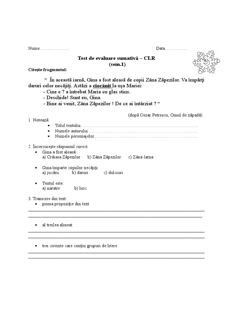 Item 3 – să transcrie corect propoziţiile din text, respectând cerinţele date;