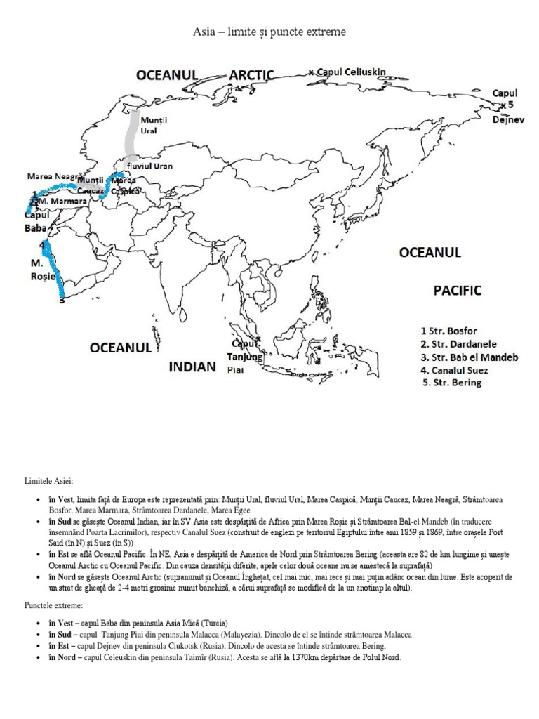 în Vest, limita față de Europa este reprezentată prin: Munții Ural, fluviul Ural, Marea Caspică, Munții Caucaz, Marea Neagră, Strâmtoarea