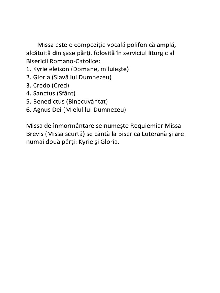 numai două părţi: Kyrie şi Gloria.
