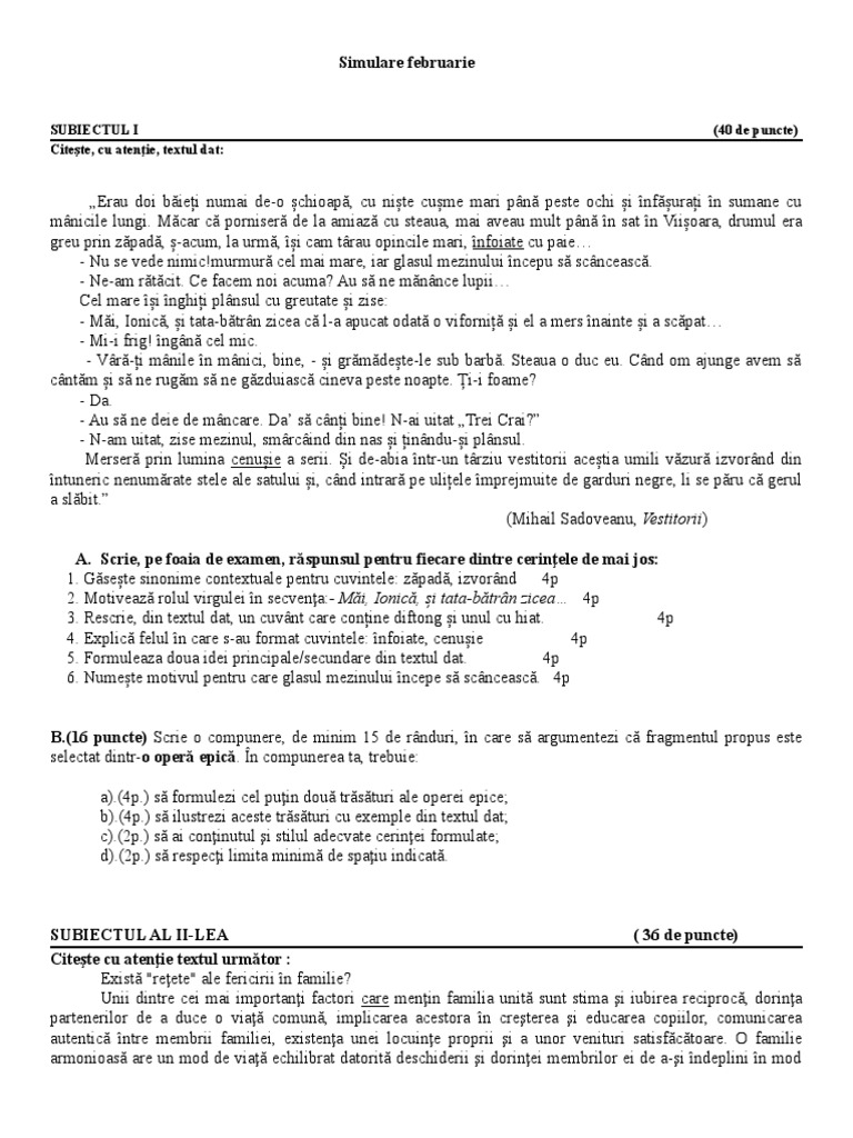SUBIECTUL I (40 de puncte)