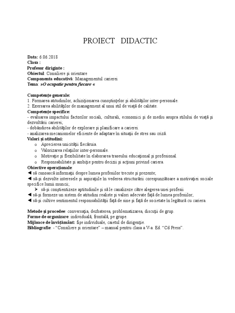 PROIECT DIDACTIC