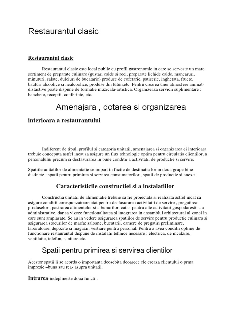 Restaurantul clasic este local public cu profil gastronomic in care se serveste un mare