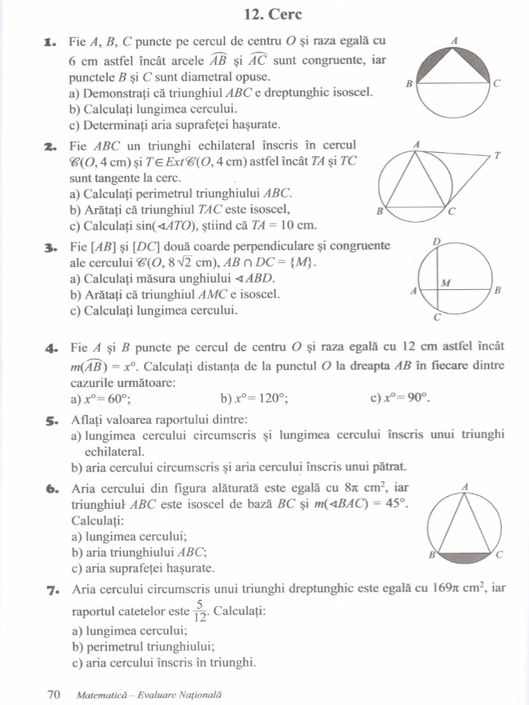 a) lungimea cercului circumscris si lungimea cercului inscris unui triunghi