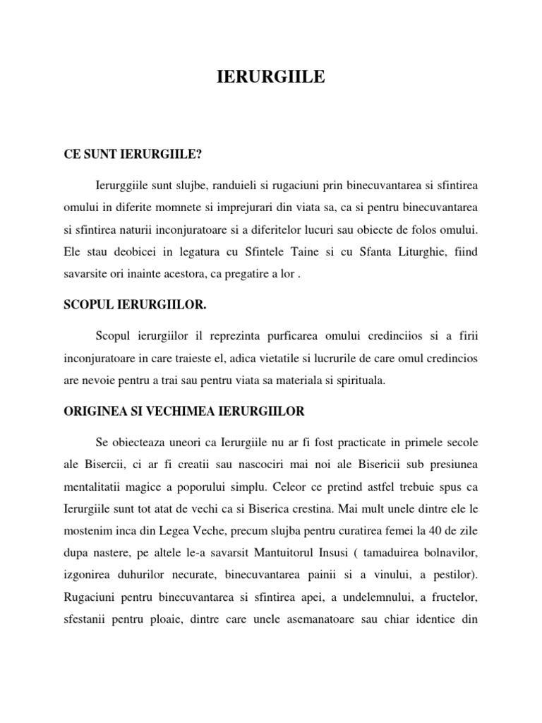 Ierurgii, multe dintre Ierurgiile principale de azi erau socotite odinioara de Biserica