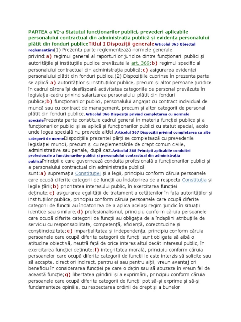 PARTEA a VI-a Statutul funcționarilor publici, prevederi aplicabile