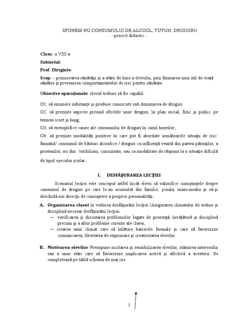1. „Tutunul, alcoolul, drogul“ – prezentare generală ;