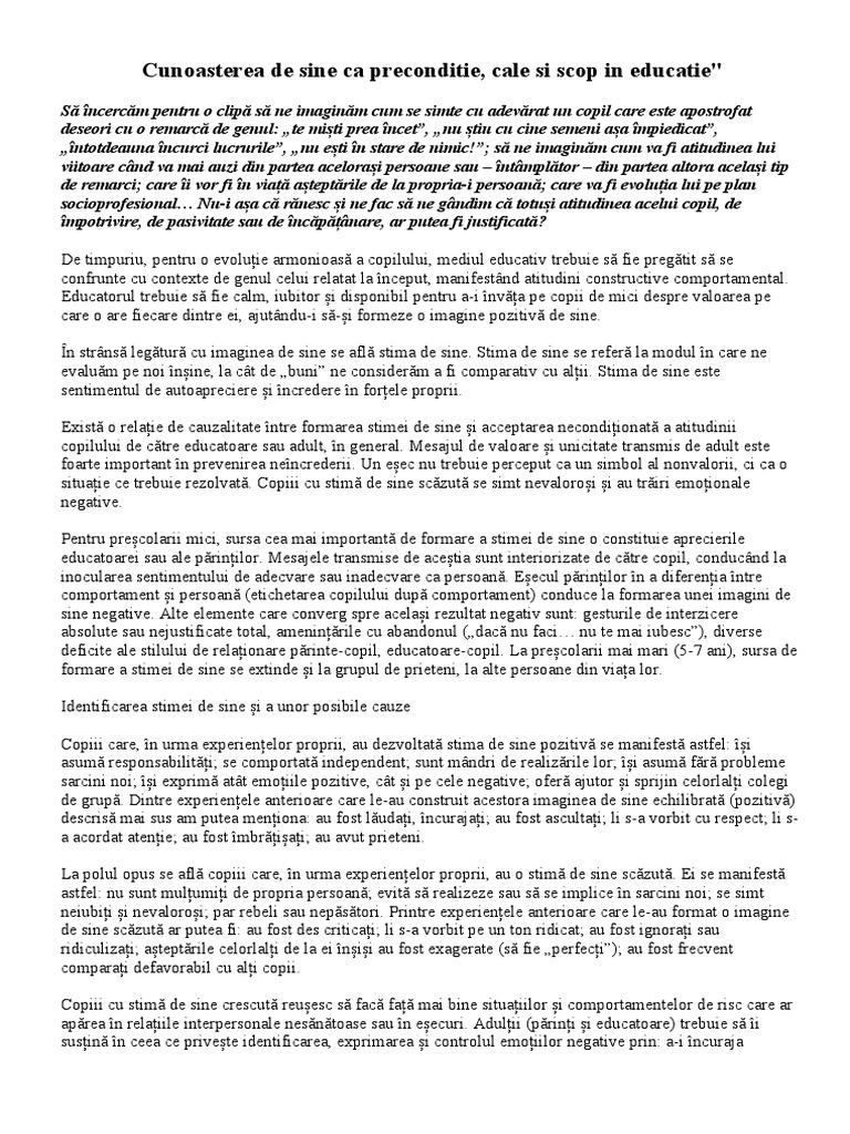 educatoarei sau ale părinților. Mesajele transmise de aceștia sunt interiorizate de către copil, conducând la