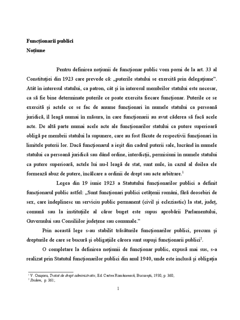 V. Onişoru, Tratat de drept administrativ, Ed. Cartea Românească, Bucureşti, 1930, p. 360;