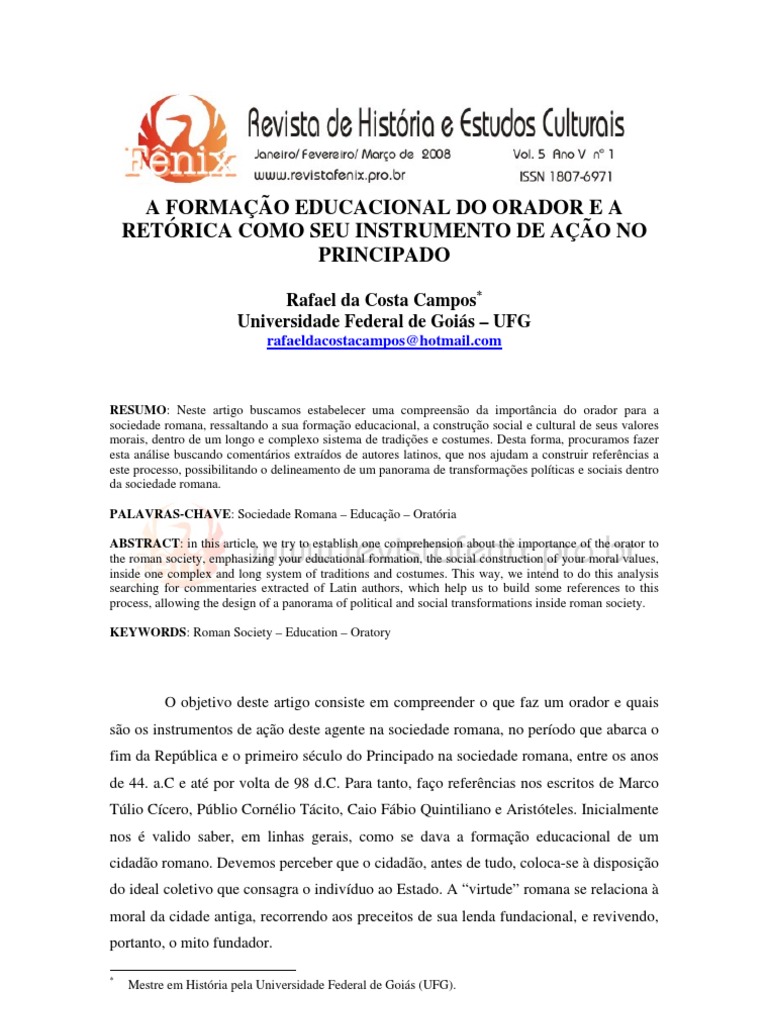 PALAVRAS-CHAVE: Sociedade Romana – Educação – Oratória