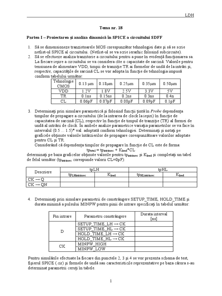 Partea I – Proiectarea şi analiza dinamică în SPICE a circuitului SDFF