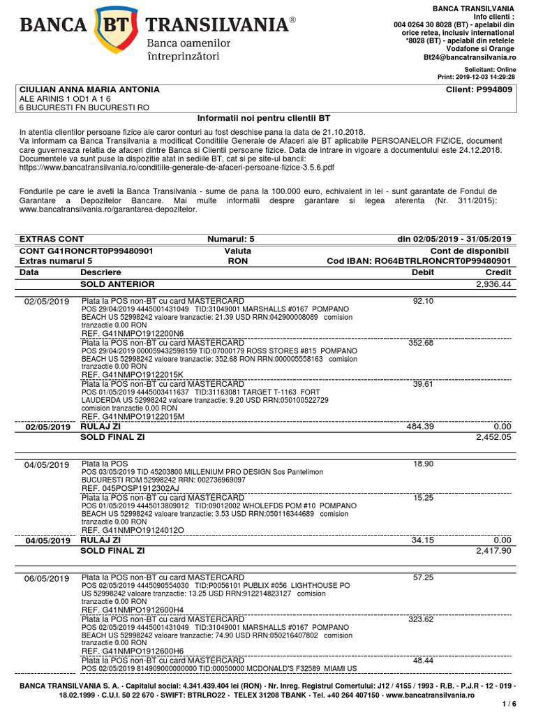 Acest extras de cont este valabil fara semnatura si stampila, putand fi obtinut