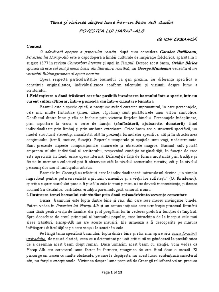 2. Analiza, la alegere, a două componente de structură şi de limbaj ale basmului,