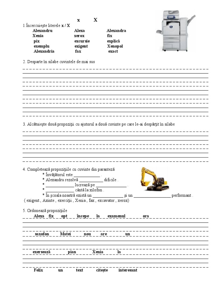 ( exigent , Axinte , exerciţii , Xenia , fax , excavator , xerox)