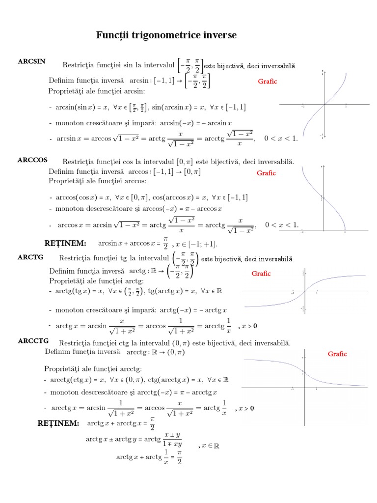ARCCTG Restricţia funcţiei ctg la intervalul (0, π) este bijectivă, deci inversabilă.