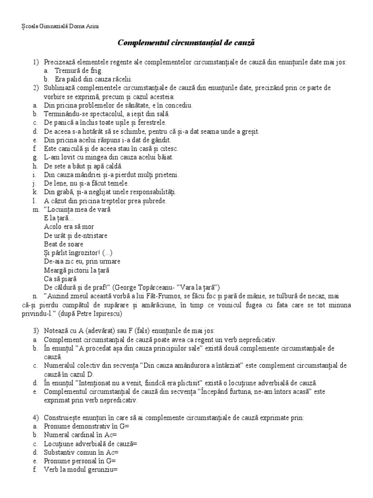 4) Construiește enunțuri în care să ai complemente circumstanțiale de cauză exprimate prin: