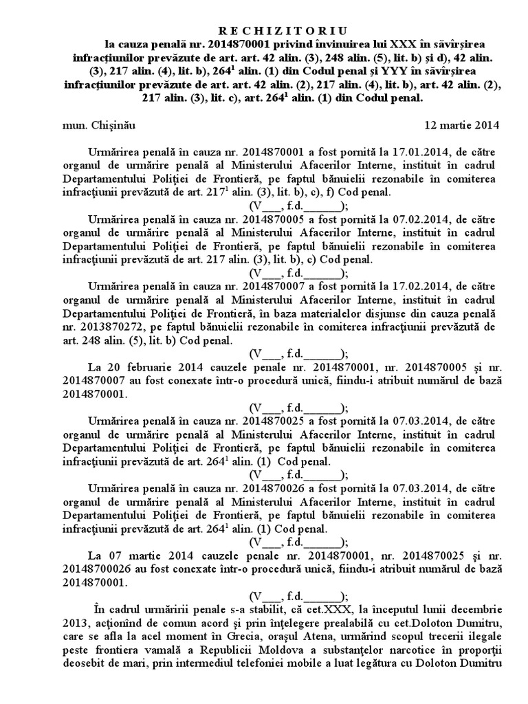 Rechizitoriu a fost întocmit în mun. Chişinău la 12 martie 2014 şi în conformitate