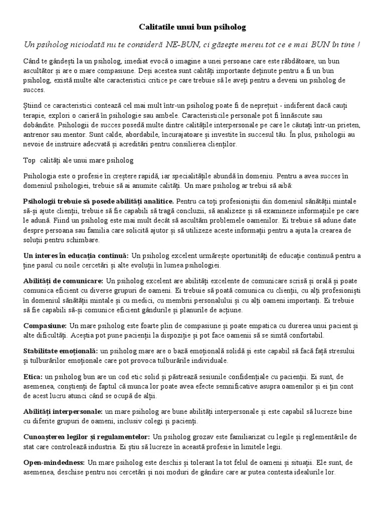 care fac candidatul ideal pentru a deveni psiholog. Dacă acestea sunt abilități și caracteristici pe care le