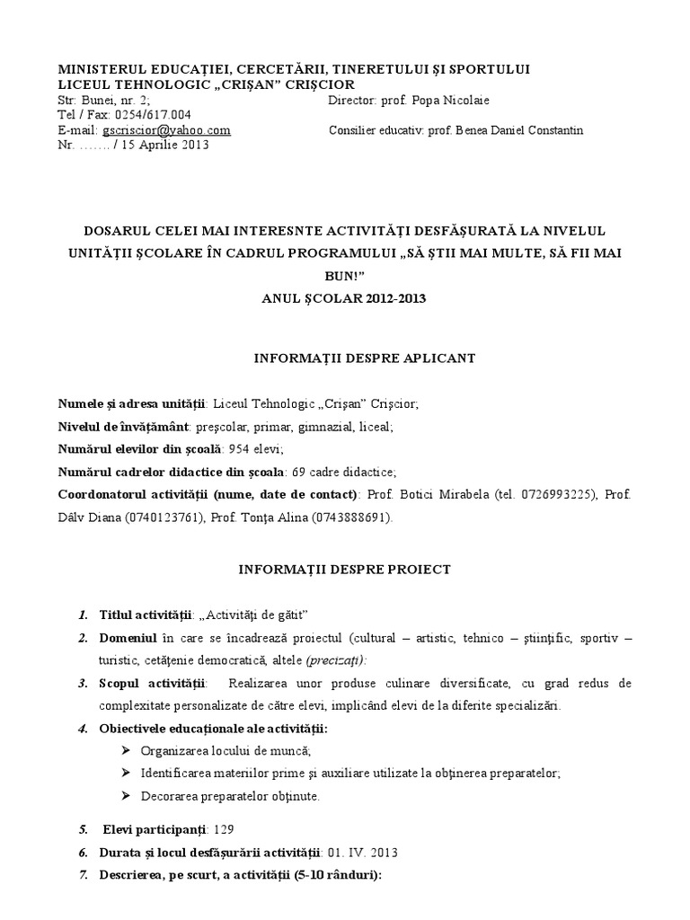 E-mail: gscriscior@[Link] Consilier educativ: prof. Benea Daniel Constantin