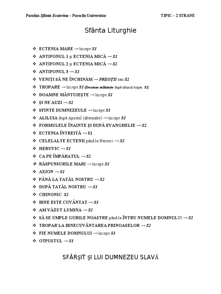 TROPARE → începe S1 (Doamne miluiește după ultimul tropar: S2)